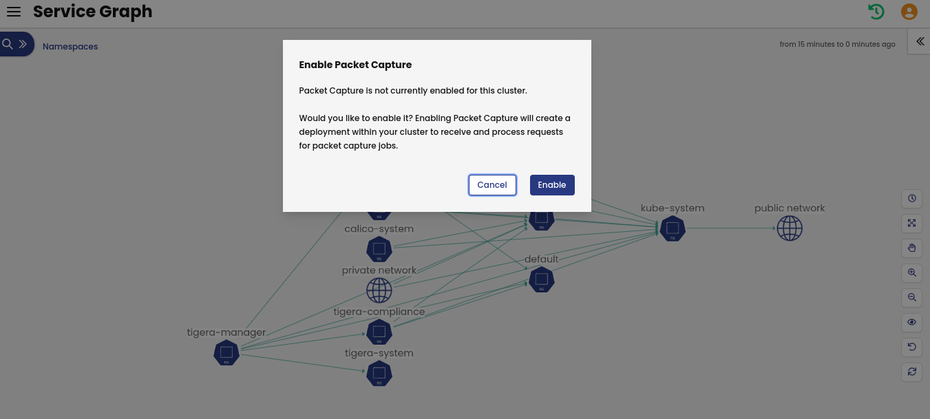 Calico Cloud packet capture is implemented in a Kubernetes-native way so you can troubleshoot service/application connectivity issues and performance issues. You can start a packet capture in the web console Service Graph, or using the CLI.